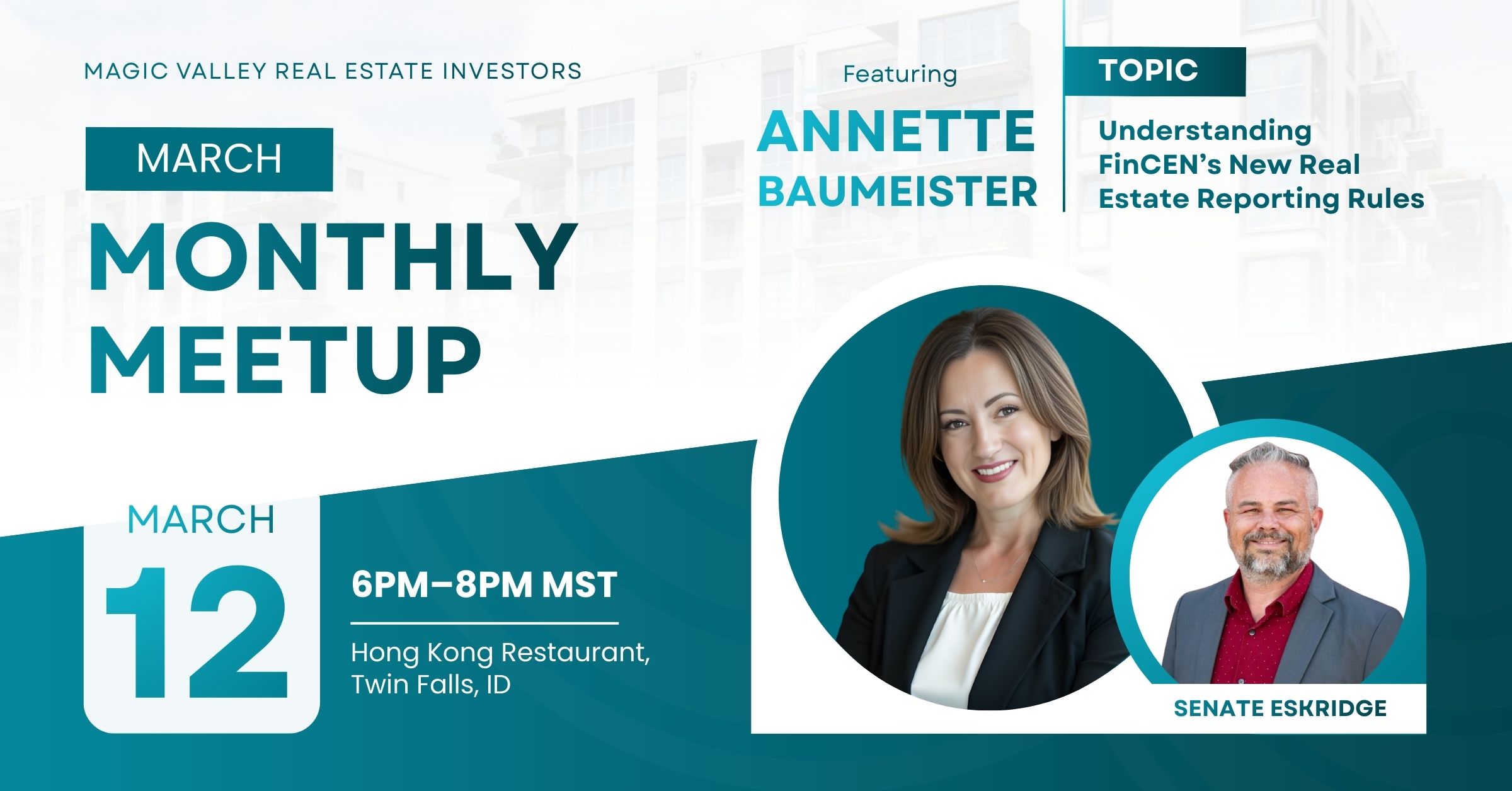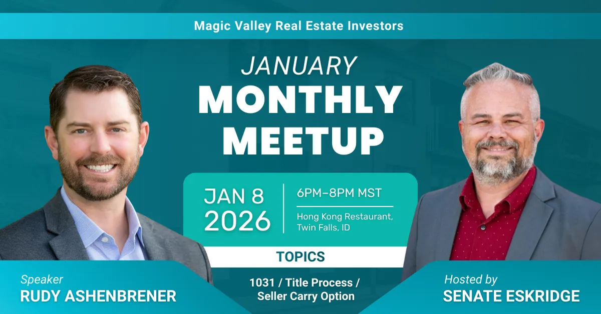 Join Magic Valley’s growing community of real estate investors for an evening of connection, market insights, and real-world investing conversations.